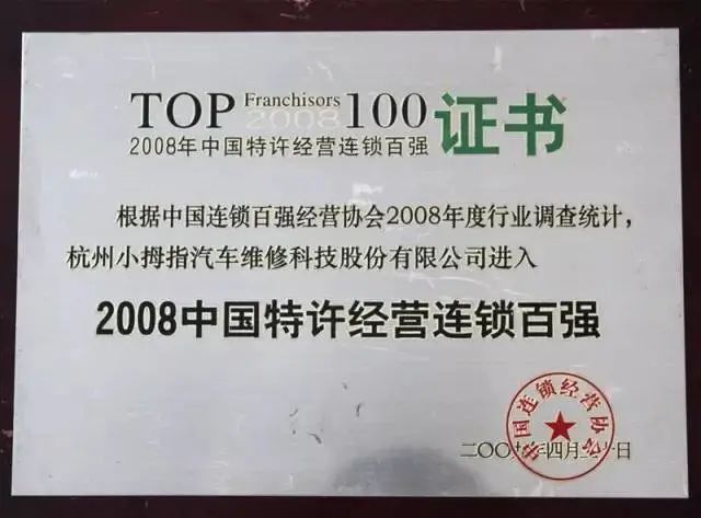 2022年5月30日,中國連鎖經(jīng)營協(xié)會(huì)公布《2021年中國特許連鎖百強(qiáng)》榜單,小拇指作為汽車后市場(chǎng)的代表企業(yè)再獲百強(qiáng)榮譽(yù)。早在2009年,小拇指就經(jīng)過評(píng)選,榮獲“2008中國特許經(jīng)營...